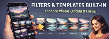 This feature provides a variety of ready-to-use filters and templates to enhance your photos quickly. You can apply them to your images and adjust the intensity to fit your style. It makes editing faster while keeping your photos visually appealing.