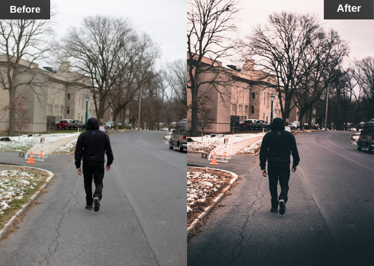 This preset adds contrast and dramatic lighting to street shots. It enhances shadows and highlights to give images a bold and moody look.