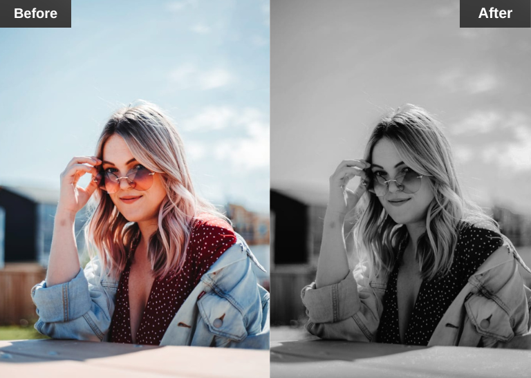 This preset removes color and focuses on contrast and texture. It gives photos a classic and timeless look.