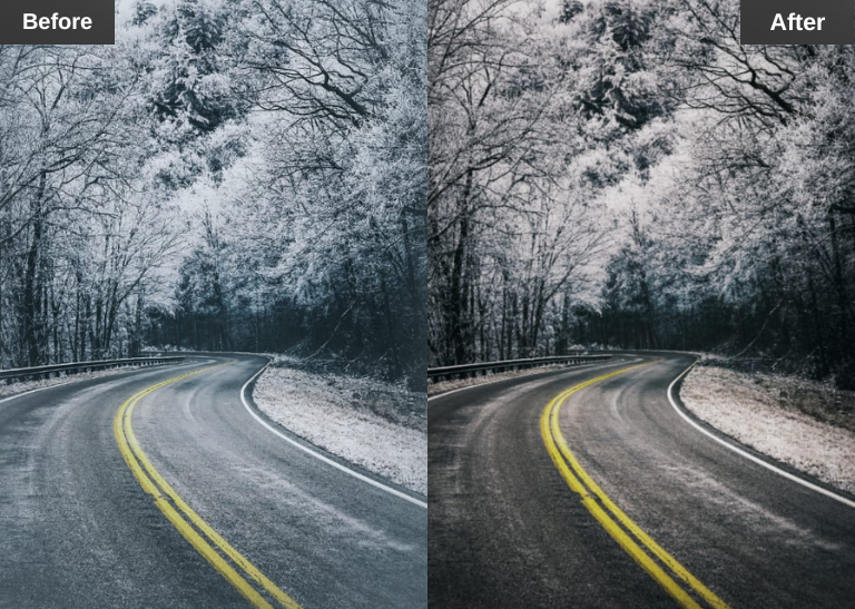 This preset highlights whites and cool tones, as it is designed for winter scenes. It helps snow photos look bright and clean